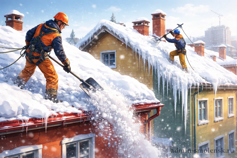 Необходимые меры безопасности при очистке крыш зданий от снега и наледи
