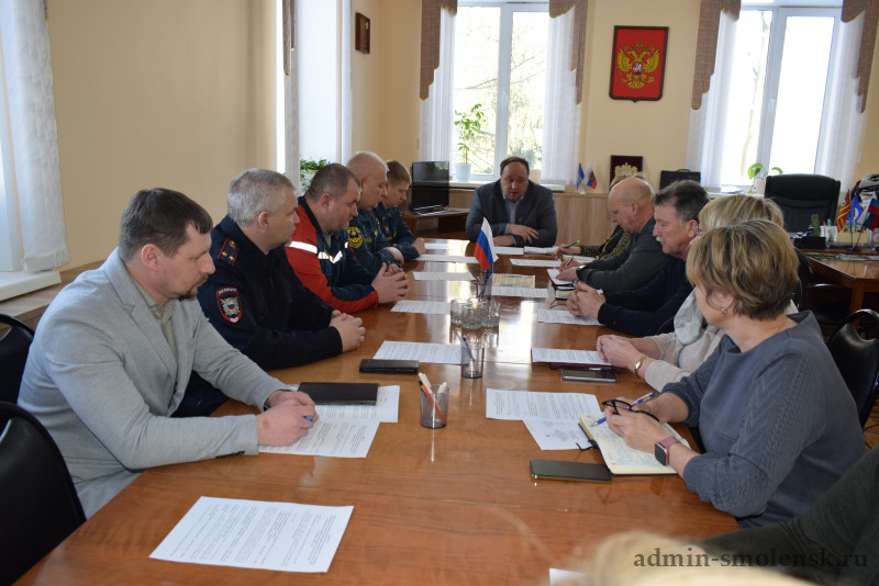 В рамках внепланового заседания Комиссии по предупреждению и ликвидации чрезвычайных ситуаций и обеспечению пожарной безопасности заслушали сотрудника управления надзорной деятельности и профилактической работы Главного управления МЧС России по Смоленской области Евгения Кученкова.